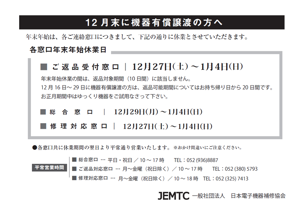 〔年末年始休業期間〕 2025年12月29日(月)~ 2026年1月4日(日)